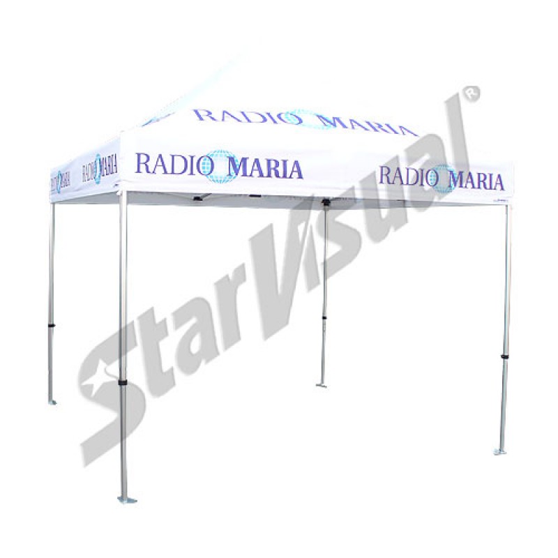 La versione del gazebo personalizzato 4x4 mt si presenta con il tetto impermeabile e ignifugo certificato, stampato interamente in digitale e alla quale si possono comunque aggiungere degli accessori(anche personalizzati) per poter chiudere il gazebo su 1 o più lati oppure unire più strutture coprendo cosi superfici più ampie.
