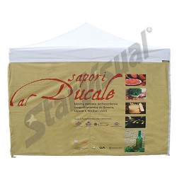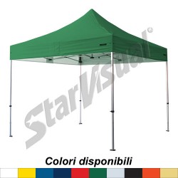 Il gazebo professionale serie ELEGANT si differenzia da quant’altro presente sul mercato per le elevate qualità dei materiali utilizzati per la sua costruzione. Gambe portanti in robusto alluminio anodizzato sezione esagonale, viteria in robusto ed elegante acciaio, guarnizioni di protezione in morbida gomma, molle di regolazione in acciaio, profili paleria in alluminio anodizzato a forma ovale per evitare lacerazioni del tetto in fase di chiusura, rondelle in materiale termoplastico per snodi paleria, piedini in alluminio di forma triangolare con dei fori per fissaggio sul terreno. Grazie ai materiali top di gamma nonché ad un assemblaggio seguito secondo regola d’arte, possiamo garantire durata e semplicità d’utilizzo, punti fondamentali per qualificarci tra i pochi veri produttori europei di gazebi di qualità. I gazebi in alluminio STARVISUAL hanno illimitate modalità d’impiego, sia in ambiente coperto che all'aperto. Tutti i lati del gazebo rapido a pantografo (sia tetto che pareti) possono essere personalizzati a piacimento rendendolo uno straordinario mezzo pubblicitario e di comunicazione.