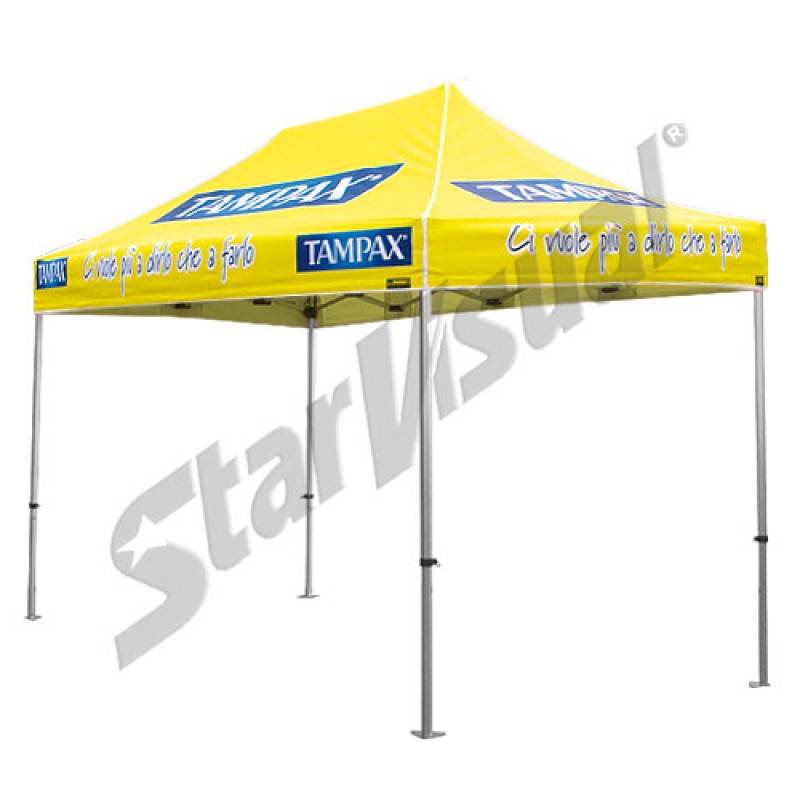 Il gazebo super professionale serie SUPER-ELEGANT si differenzia da quant’altro presente sul mercato per le elevate qualità dei materiali utilizzati per la sua costruzione. Gambe portanti in robusto alluminio anodizzato sezione esagonale, viteria in robusto ed elegante acciaio, guarnizioni di protezione in morbida gomma, molle di regolazione in acciaio, profili paleria in alluminio anodizzato a forma ovale per evitare lacerazioni del tetto in fase di chiusura, rondelle in materiale termoplastico per snodi paleria, piedini in alluminio di forma triangolare con dei fori per fissaggio sul terreno. Grazie ai materiali top di gamma nonché ad un assemblaggio seguito secondo regola d’arte, possiamo garantire durata e semplicità d’utilizzo, punti fondamentali per qualificarci tra i pochi veri produttori europei di gazebi di qualità. I gazebi in alluminio STARVISUAL hanno illimitate modalità d’impiego, sia in ambiente coperto che all'aperto. Tutti i lati del gazebo rapido a pantografo (sia tetto che pareti) possono essere personalizzati a piacimento rendendolo uno straordinario mezzo pubblicitario e di comunicazione.