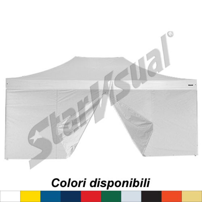 Chiusura laterale con porta, misura 6 mt, per gazebo pieghevole, confezionata con tessuto poliestere resinato impermeabile.