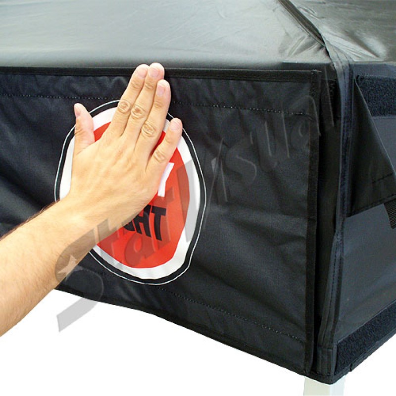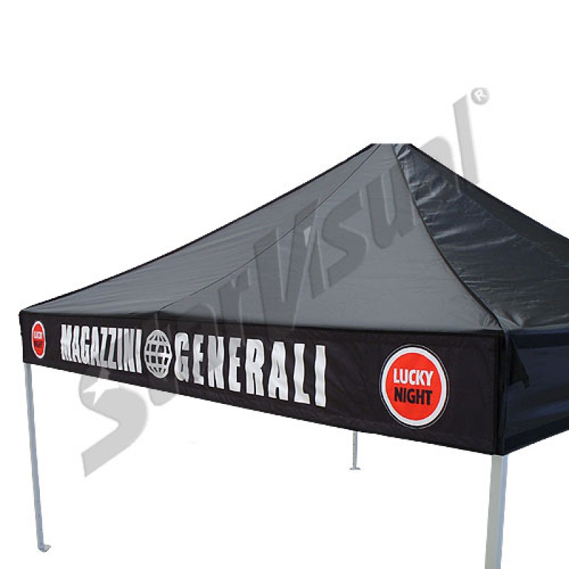 Striscione da 6 mt per mantovana gazebo pieghevole, stampato in digitale a sublimazione su tessuto poliestere impermeabile ed ignifugo certificato.